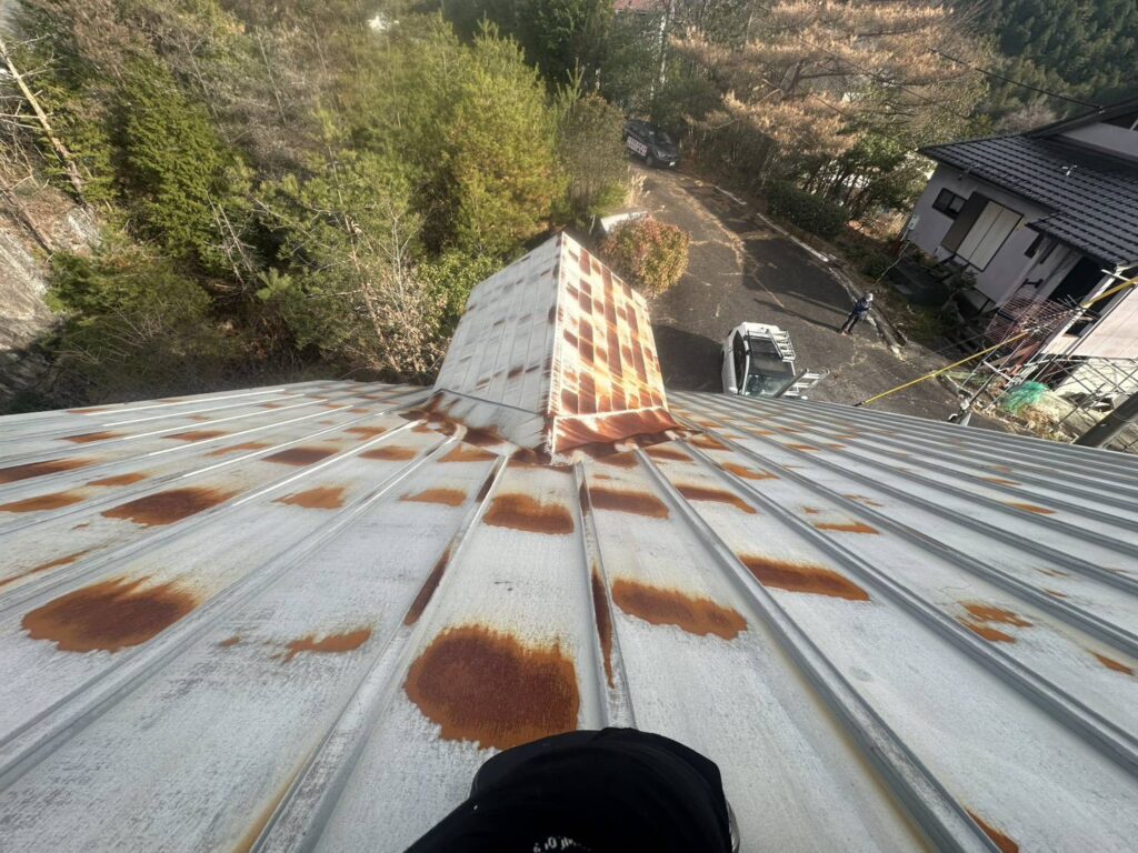 大屋根のガルリウム鋼板が、かなり錆が進行しています。
