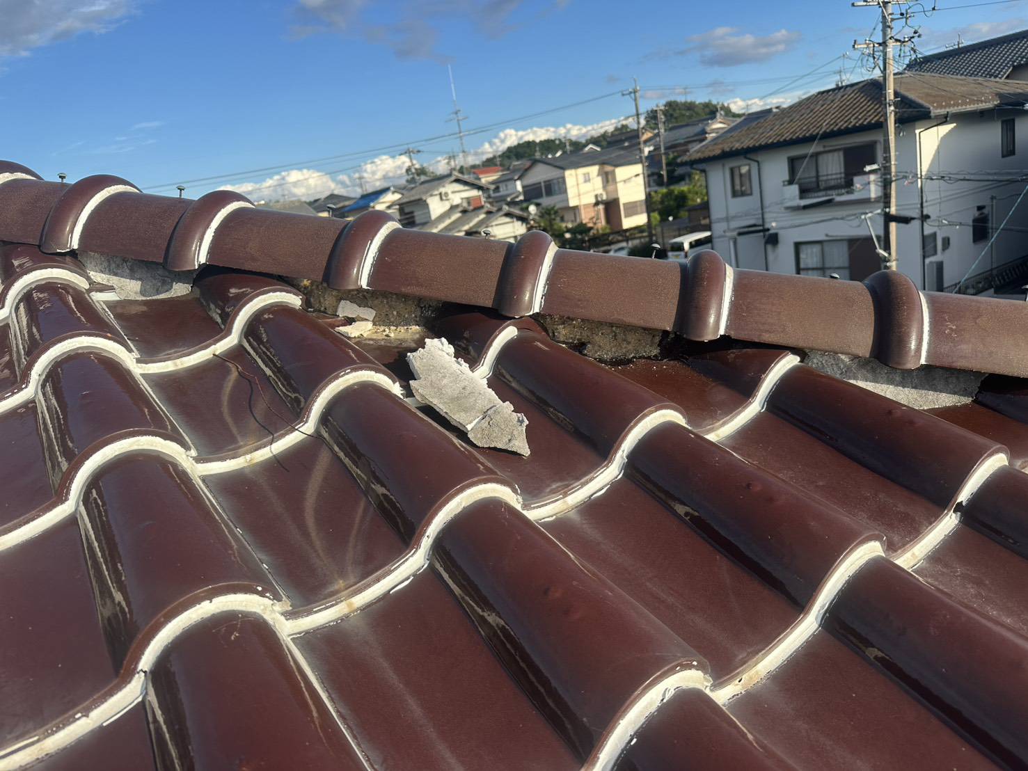 この既設の瓦を撤去して、新しい瓦を積み直した方が早いかもしれませんね。