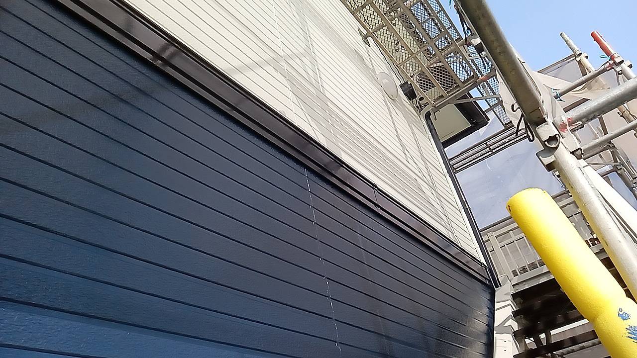アパートの屋根外壁塗装工事も、もうじき完了となります。