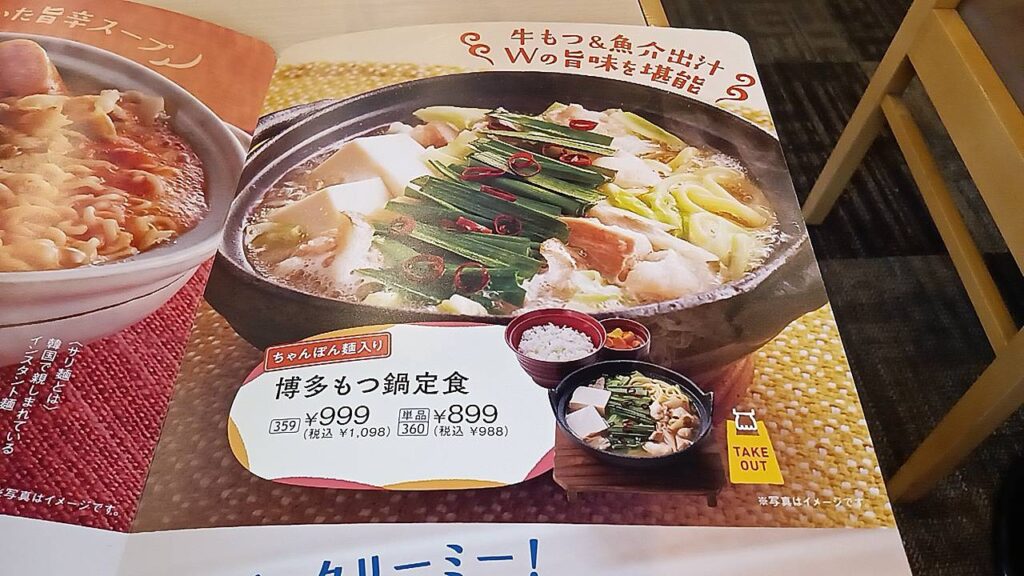 ジョイフル多治見店の、博多もつ鍋定食は美味しかったですね。