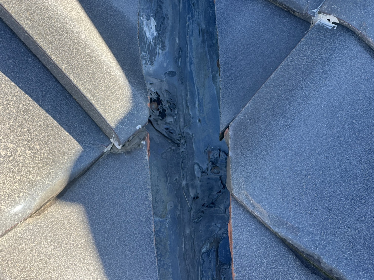 屋根の銅板の谷樋に穴が開いて雨漏れを起こしています。美濃加茂市です。