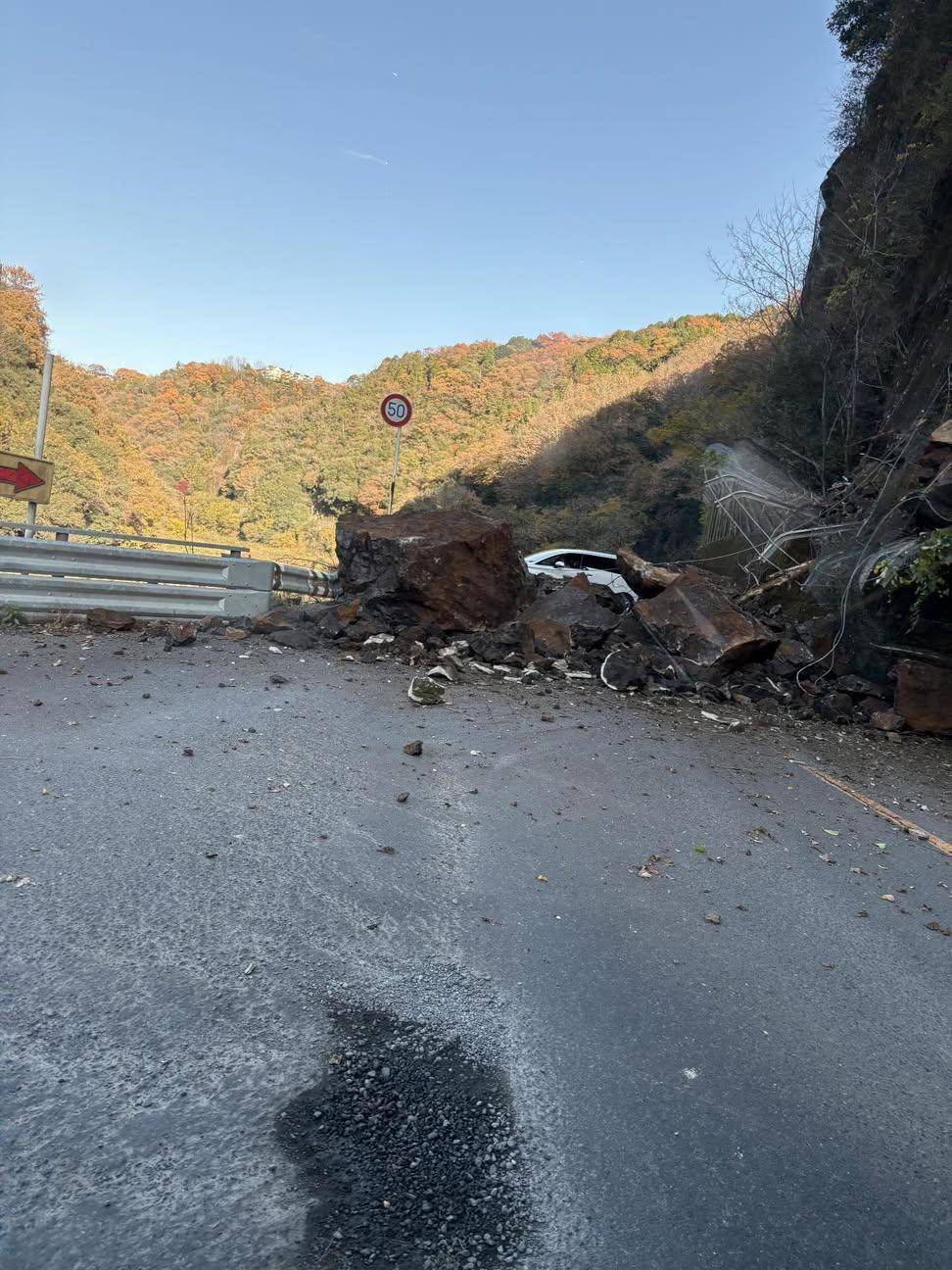 愛岐道路の崖崩れです。いつ通れるのか不明です。