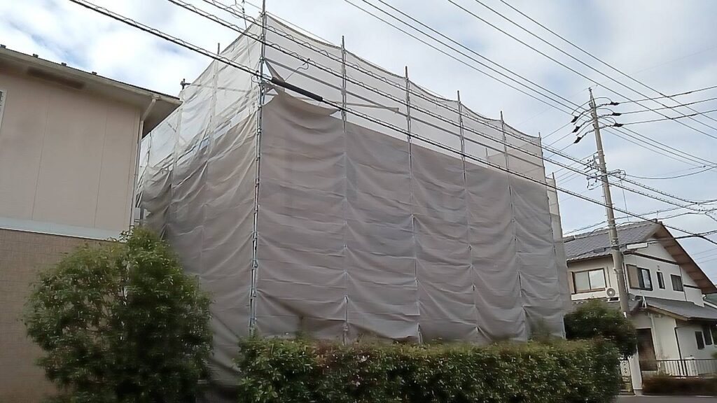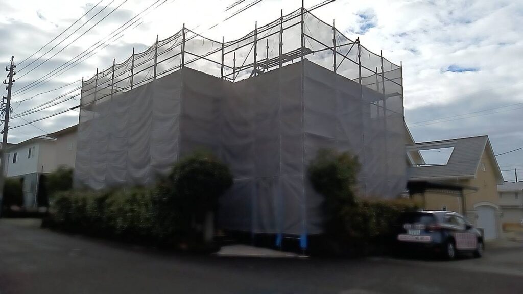 新しい足場が可児市に建ちました。屋根と外壁の塗装を施行します。