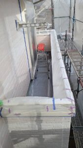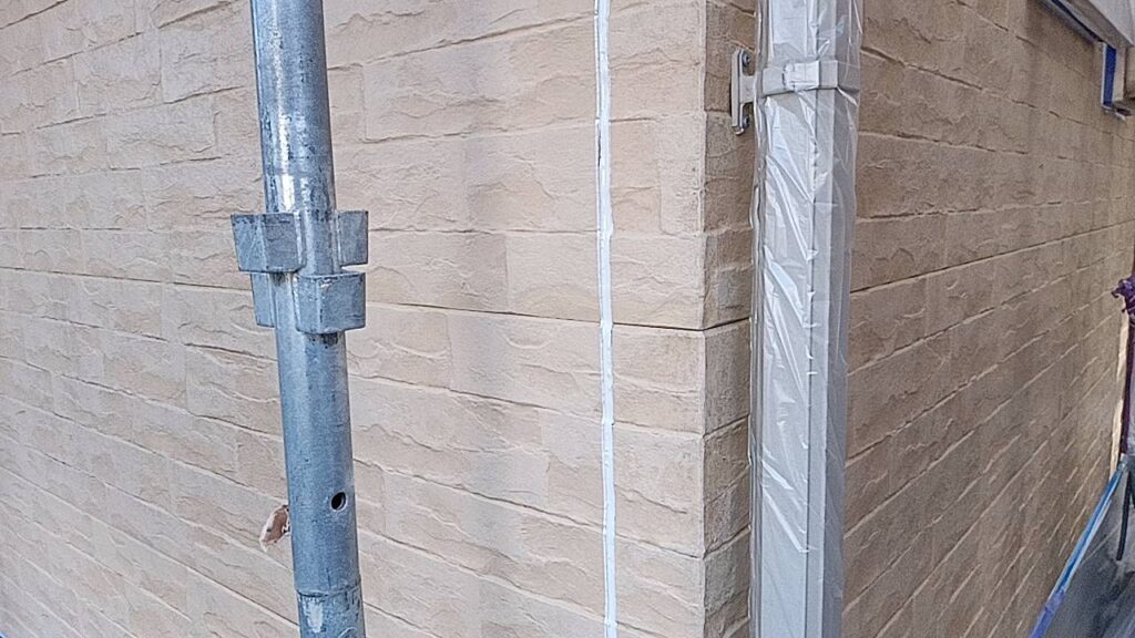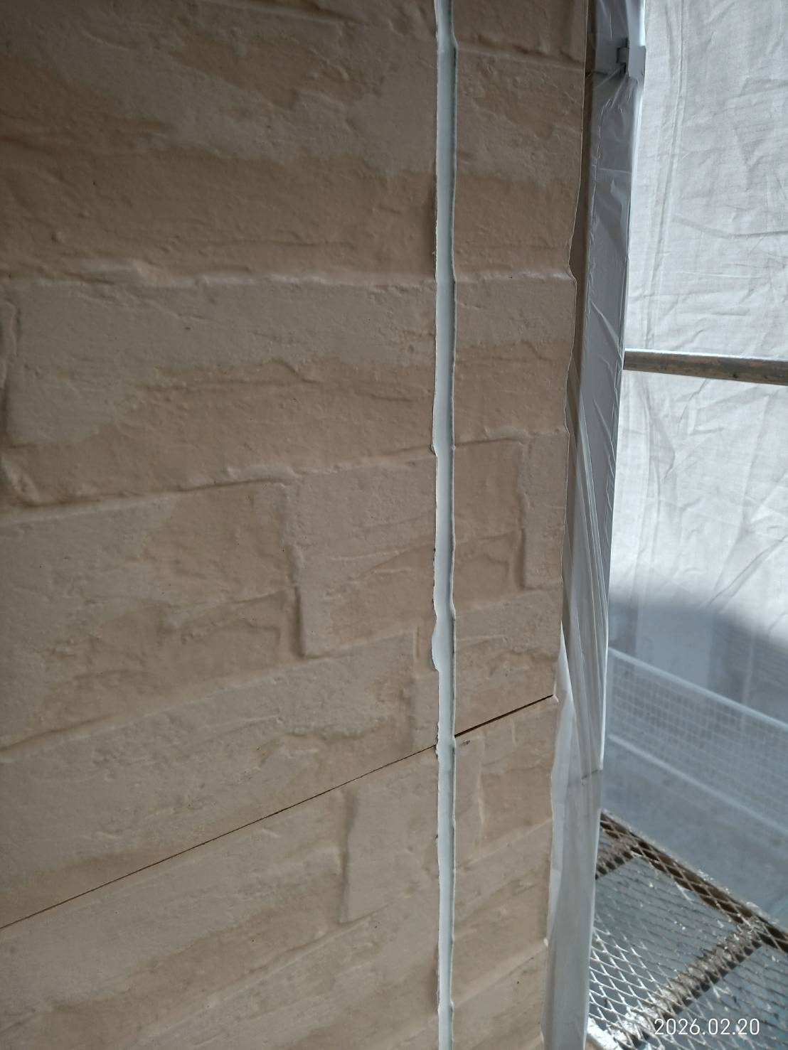 ベランダ部分の縦目地のシーリングの打ち替えが完了しました。