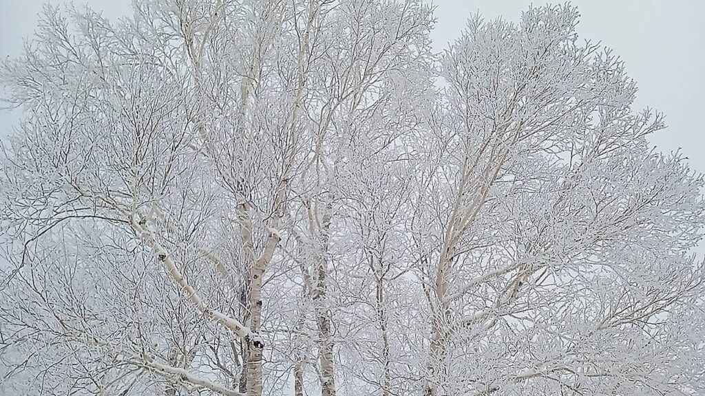 木々の枝葉に雪が乗っかり、美しい景色を奏でています。