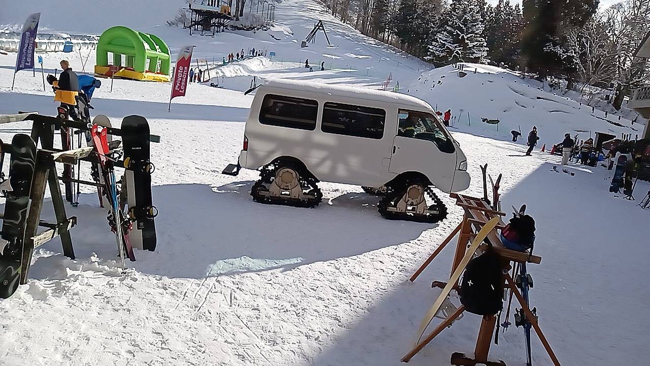 日影ゲレンデのロッジでゆっくり、していると、配達車がきました。