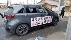 *私の車、フイットのラッピングを張り替えます。美濃加茂市、さくら建装、