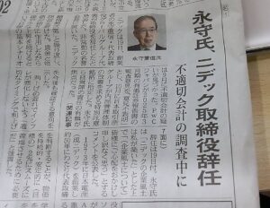 永守氏、ニデック取締役辞任、ビックリです。